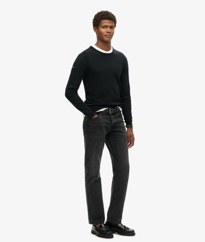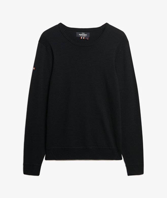 Go for your normal size 100% Merino wool Ribbed cuffs and hem Superdry branding tab on sleeve