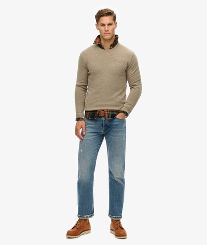 Superdry Men's Slim Fit Essential Crew Jumper, Light Brown | ricciano UNITED KINGDOM