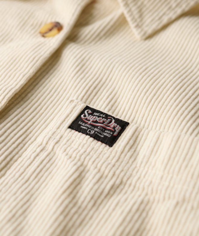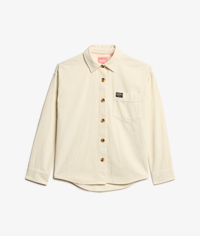 Oversized fit - exaggerated and super relaxed, let your style flow Chunky corduroy fabric Regular collar Button fastening Single patch pocket Long sleeves Button fastened cuffs Box pleat back Pocket logo patch Signature logo tab on lower placket Branded buttons