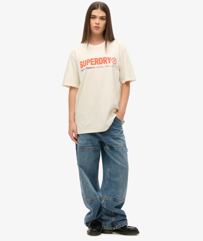 Superdry Women's Oversized Utility Sport Logo T-Shirt, Cream and Red