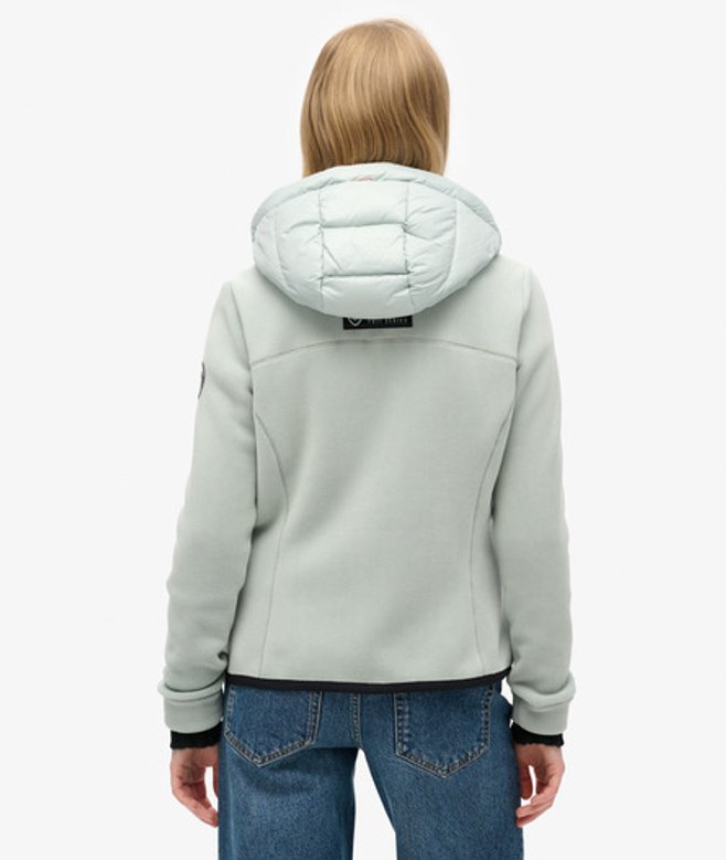 Slim fit - designed to fit closer to the body for a more tailored look UK10 shoulder to hem: 59cm Zip-up design with a hood and bungee cord adjuster Hybrid style consisting of a padded front with fleece sleeves and back panel Two zipped external pockets and one internal mesh pocket A classic hybrid of cosy fleece and warm padding, the Hooded Storm Fleece Jacket has a sleek, stylish look that is still extremely comfortable.