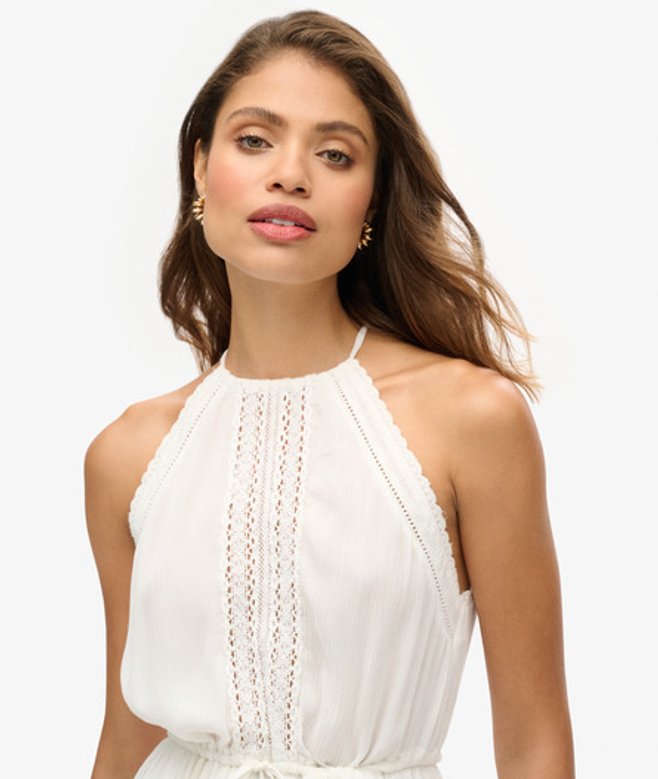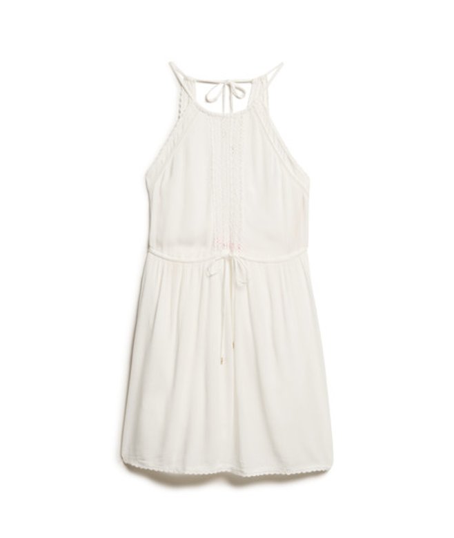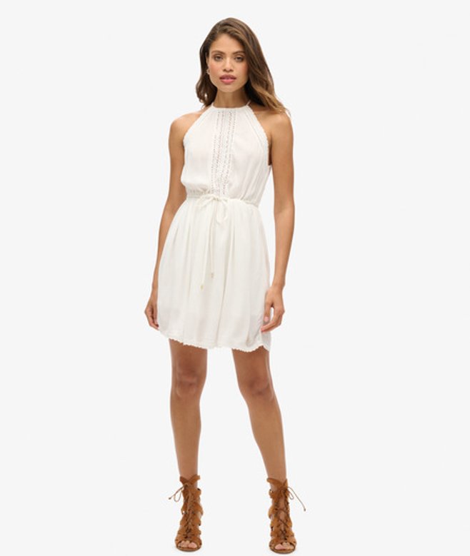 Superdry Ladies Fully lined Lace Ibiza Halter Neck Mini Dress, Off White