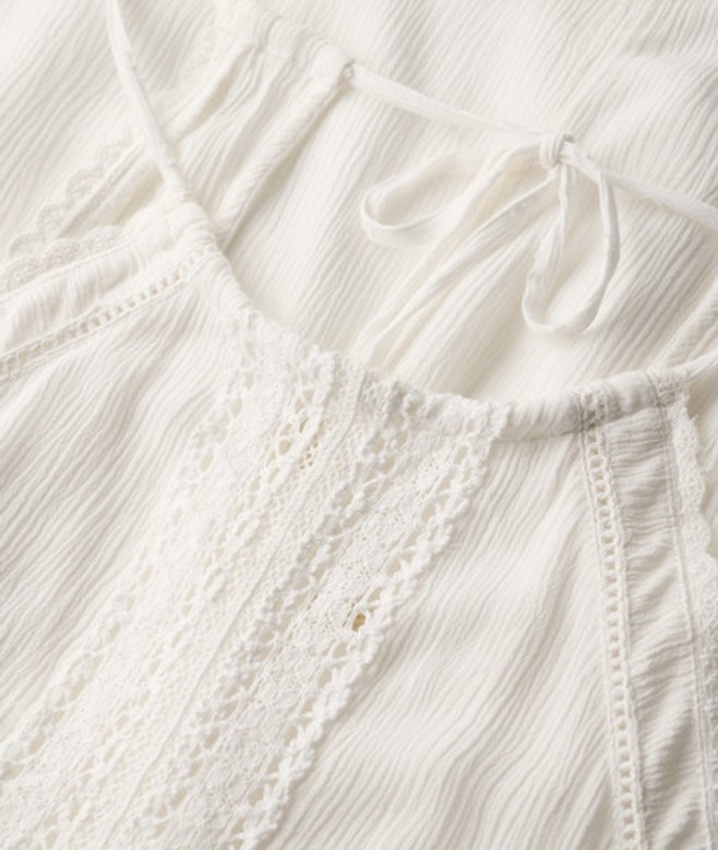 The lightweight crepe material is perfect for the warmer weather, with lace inserts and detailing to complement the relaxed, floaty aesthetic, and a drawstring waistband to ensure your ideal fit.