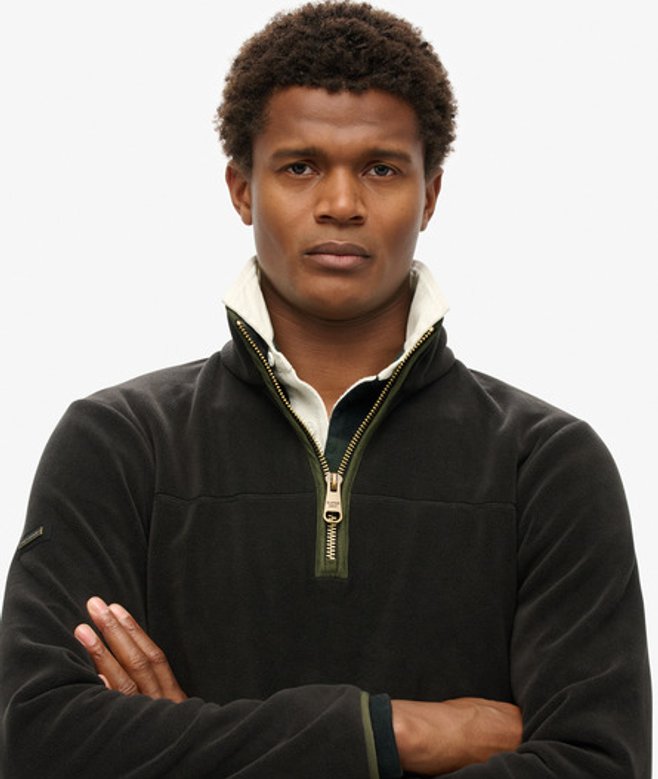 Go for your normal size Classic half zip design crafted from soft fleece material Long sleeves with elasticated cuffs and contrast trims Metal branding on the sleeve and zip pull Embrace the luxury country aesthetic with the Estate Half Zip Fleece, a sumptuously soft layering piece accented with premium touches for a truly polished finish.