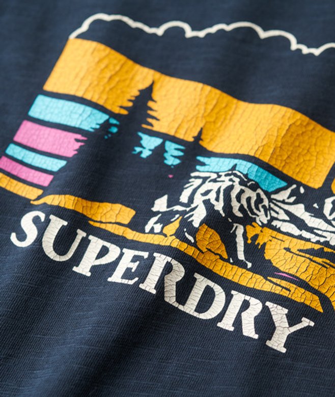 With a refresh from your basic T-Shirts thanks to the large print across it and its super soft feel, it's the ideal go-to for when you're stuck on what to wear. Slim fit - designed to fit closer to the body for a more tailored look Ribbed crew neck Short sleeved Organic cotton Superdry printed outdoors on the front