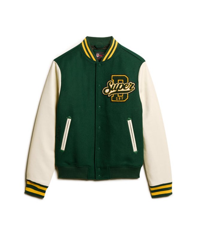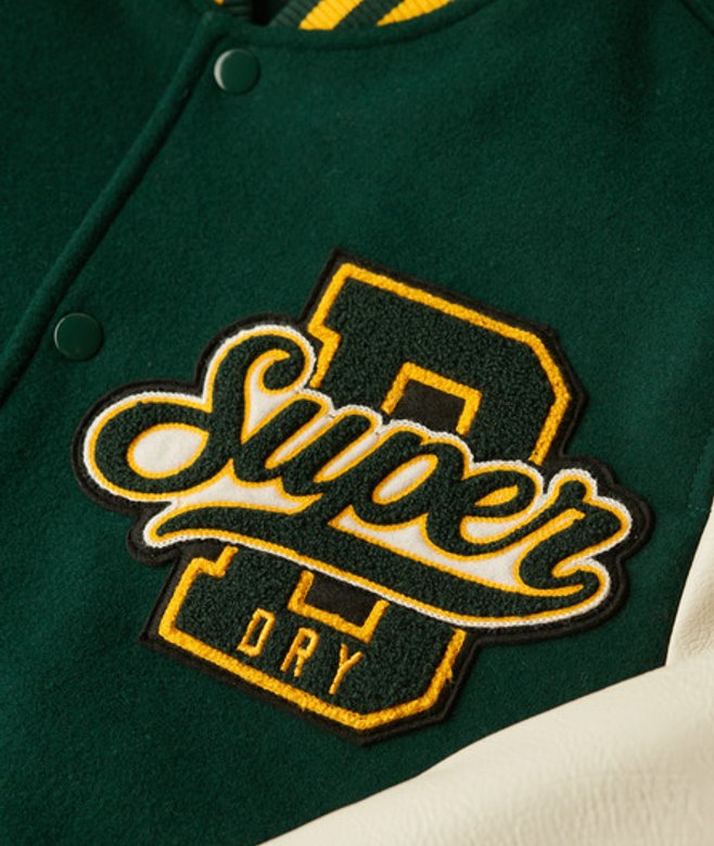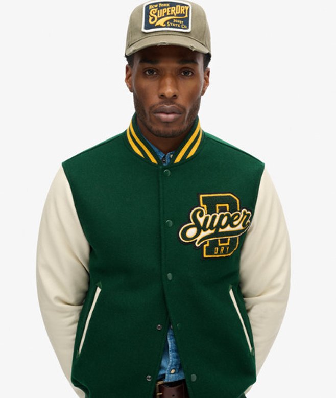 Superdry Men's Colourblock Relaxed Fit Varsity Wool Bomber Jacket, Green and Cream