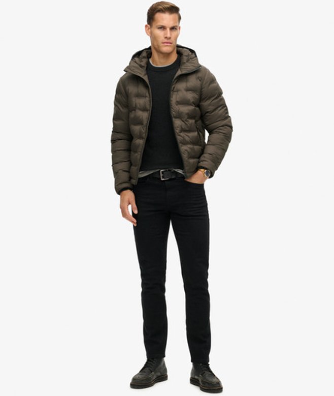 Superdry Men's Hooded Quilted Puffer Coat Brown / After Dark Brown