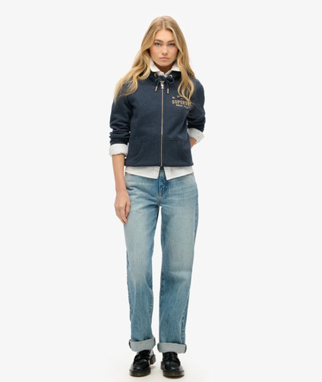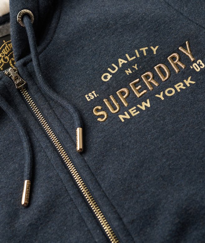 Superdry Women's Luxe Metallic Logo Zip Hoodie Navy / Trench Navy Marl