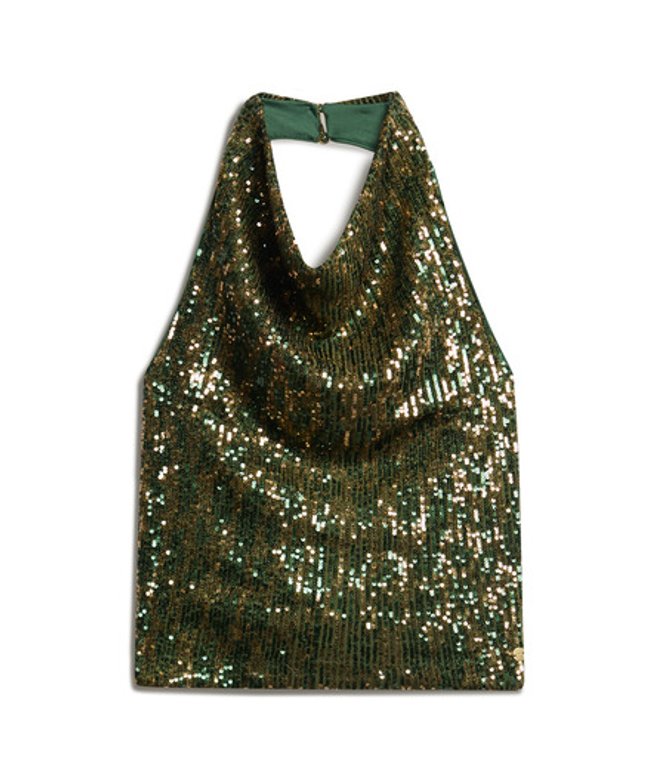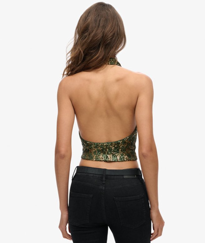 Superdry Women's Cowl Halter Neck Sequin Top Green / Green Gold Sequin