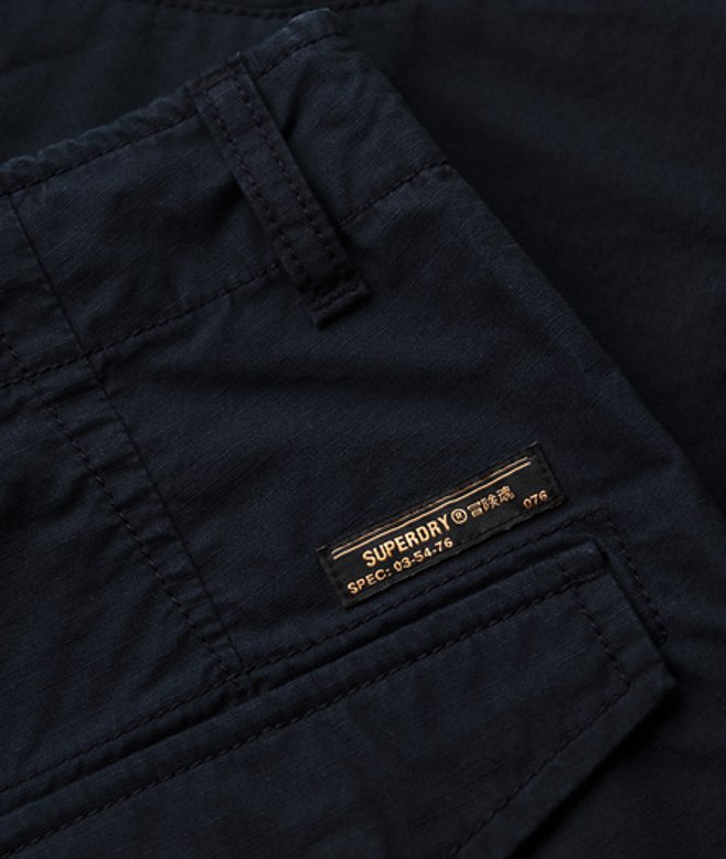 Go for your normal size Ripstop fabric Zip and button fastening Two waist pockets Two side pockets with poppers Two back pockets with poppers Superdry patches