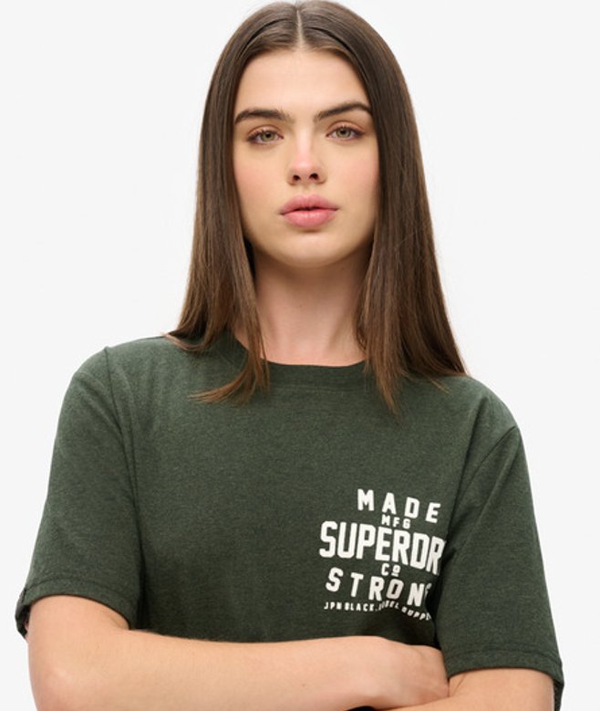 Superdry Women's Oversized Machined Goods Workwear T-Shirt, Dark Green