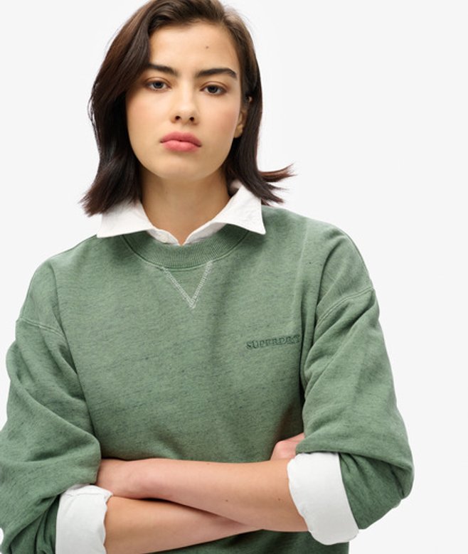 Superdry Ladies Classic Essential Logo Overdyed Sweatshirt, Green | ricciano UNITED KINGDOM