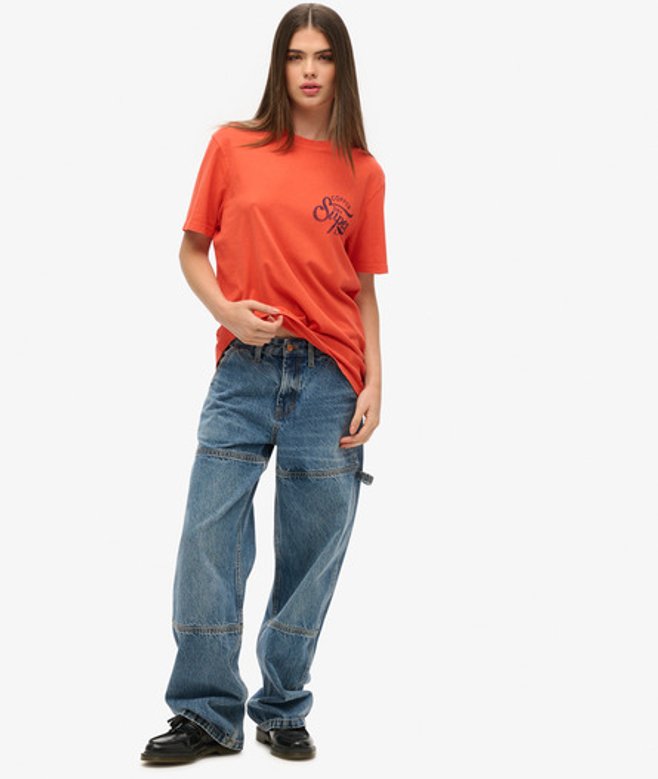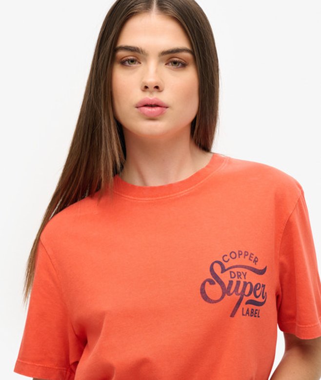 L fits UK 6-8, EU 34-36, US 2-4 XL fits UK 10-12, EU 38-40, US 6-8 XXL fits UK 14-16, EU 42-44, US 10-12 Ribbed crew neckline with short sleeves Printed graphic on the chest and the back An elevated everyday essential, our Copper Label Chest Graphic T-Shirt draws on inspiration from workwear clothing which shines through the calligraphy used in the graphic print.