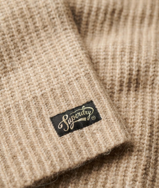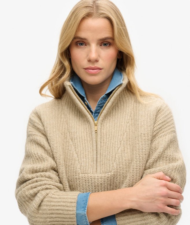 Superdry Women's Classic Ribbed Essential Zip Neck Jumper, Light Brown