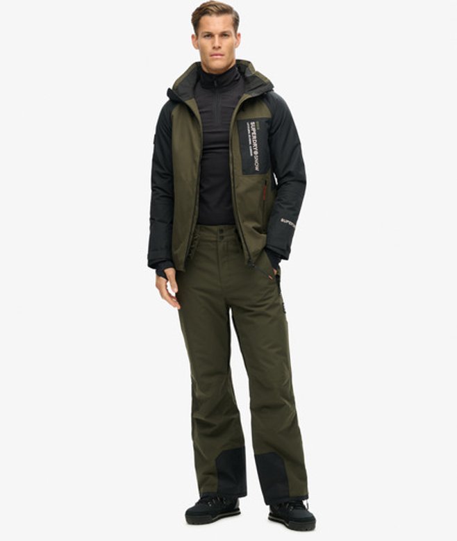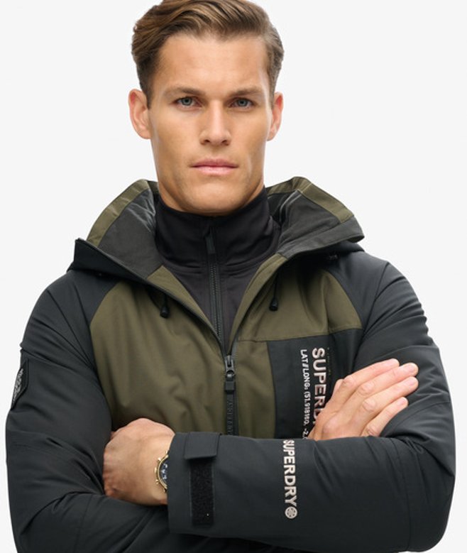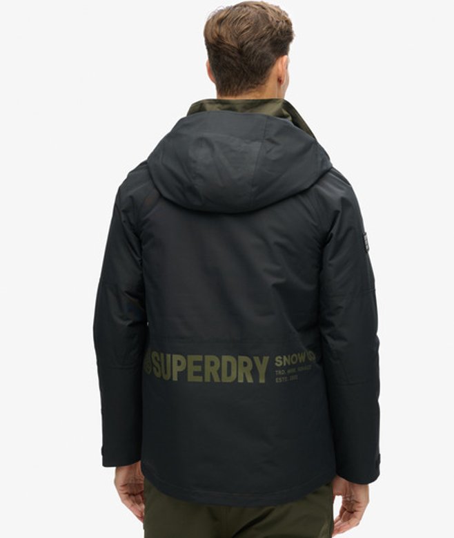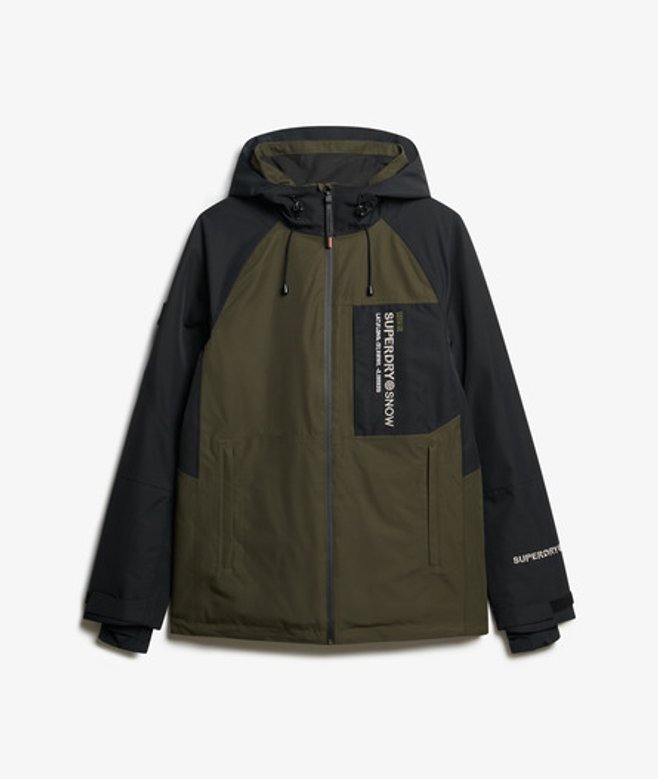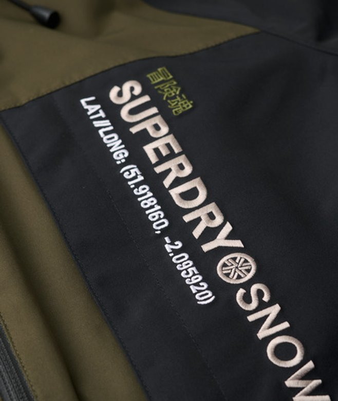 This reliable essential is perfect for venturing into the outdoors and being ready for anything, ensuring that you can enjoy the slopes in style. Loose Fit - where comfort meets cool, a stylish loose cut makes this a must-have shape Fully taped seams - Seams have been internally taped to help prevent water penetration Breathable 10k/mm - Provides airflow comfort for low to mid-level activity Waterproof 10k/mm - Rainproof and waterproof under light pressure, for light rainy days Durable water repellency - This fabric has been coated with an advanced water-resistant finish Tricot lined pockets Removable snow skirt Helmet compatible hood Hood with bungee adjustable cords Lift pass pocket Three external pockets One internal mesh pocket Second sleeve with thumb hole Velcro adjustable sleeves Superdry printed text across Contrast embroidered stitching text across the sleeve Superdry logo sewn into the sleeve