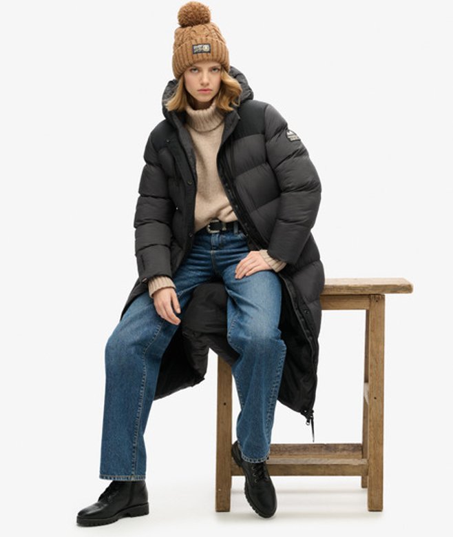 Superdry Women's Ripstop Long Puffer Jacket, Black