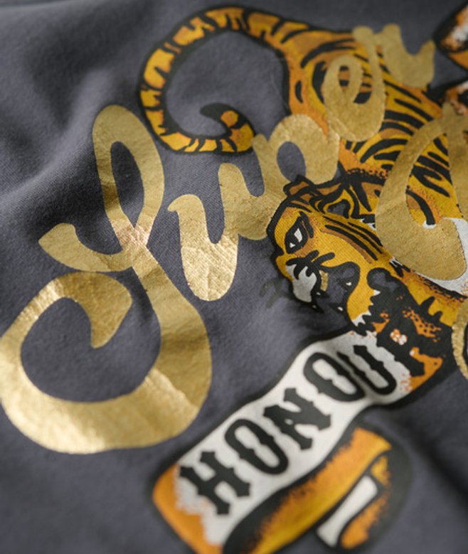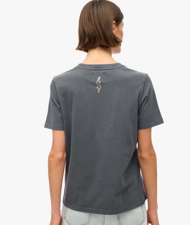 Superdry Women's Tattoo Script Relaxed T-shirt Dark Grey / Ebony