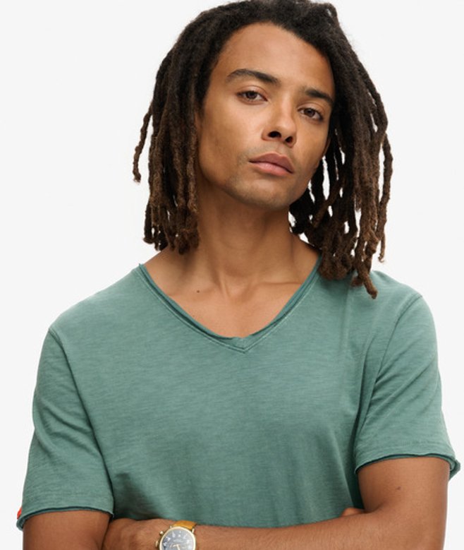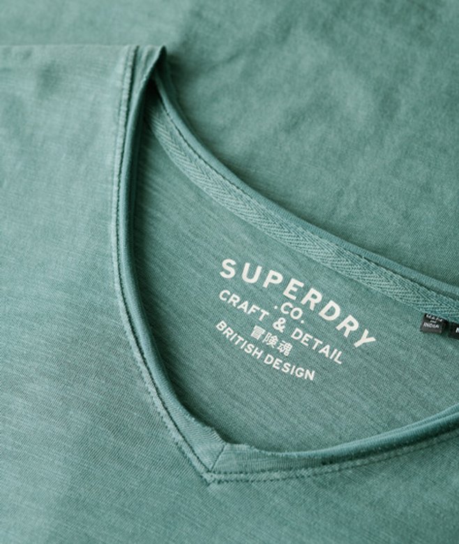Superdry Men's Raw Edge Slub V-neck T-shirt Green / Drius Green | ricciano UNITED KINGDOM