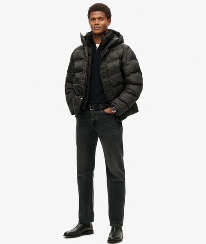 Go for your normal size Padded drawcord hood Drawcord hem Multi-layer zip and popper fastening Two pockets with zip fastening Internal mesh pocket Embroidered branding inside collar Embroidered branding on storm flap Embroidered Superdry patch on sleeve