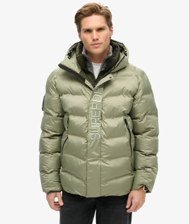 Superdry Men's Hooded City Graphic Puffer Jacket Green / Seagrass Green