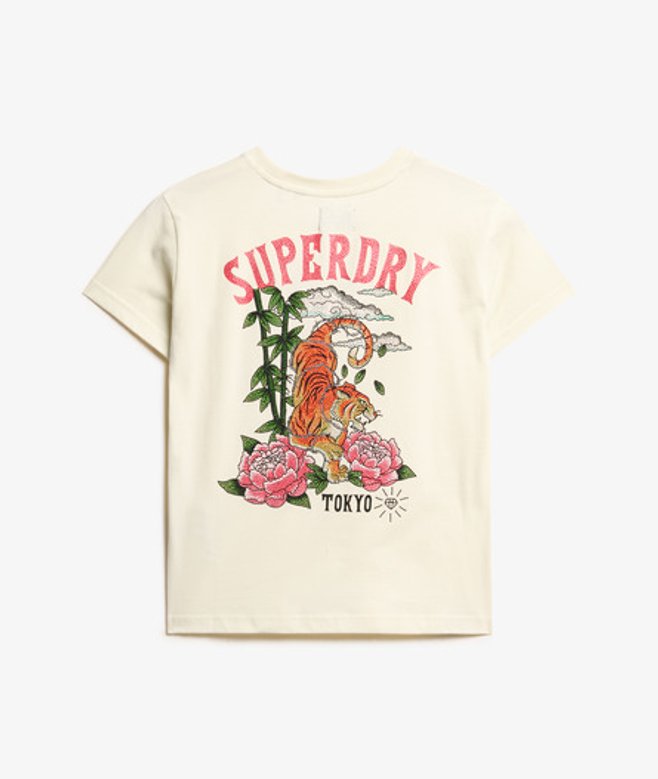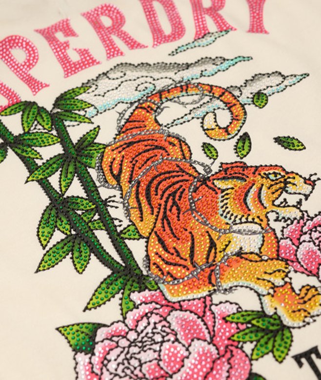 Superdry Women's Tattoo Rhinestone Fitted T-shirt Cream / Rice White