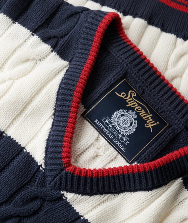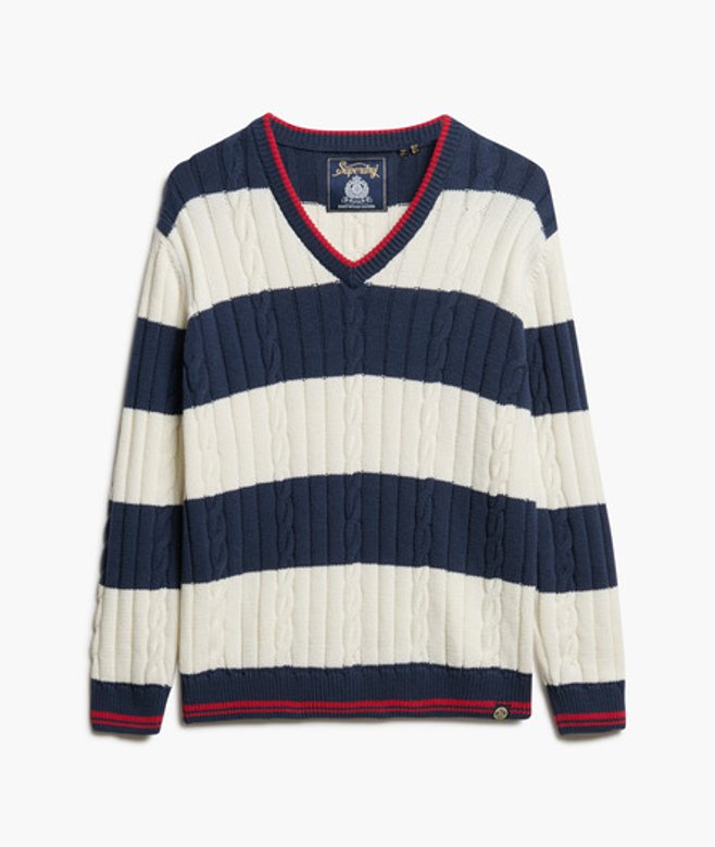 Vintage and heritage, our Stripe Oversized Cable V Neck Jumper is ideal for switching it up throughout the season.