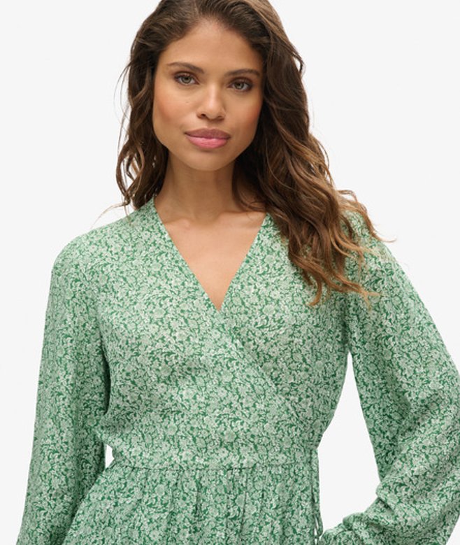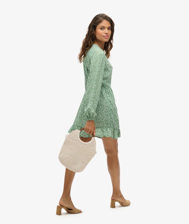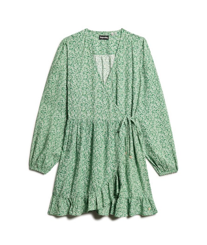 Superdry Women's Printed Long Sleeve Wrap Mini Dress Green / Meadow Ditsy Green