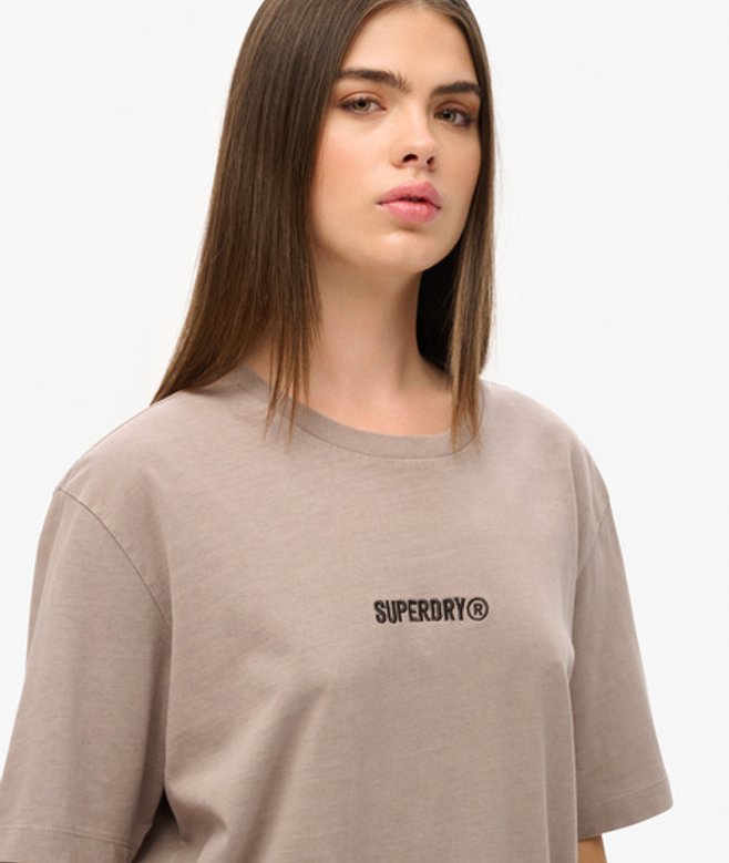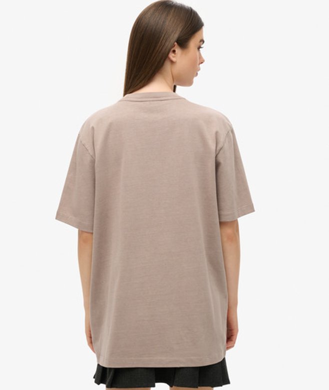 Superdry Women's Classic Oversized Micro Logo Graphic T-Shirt, Beige