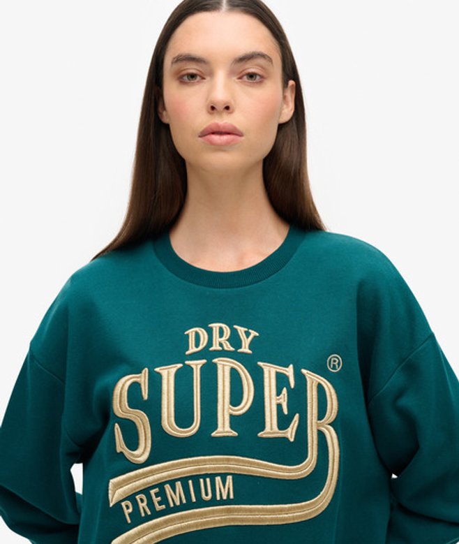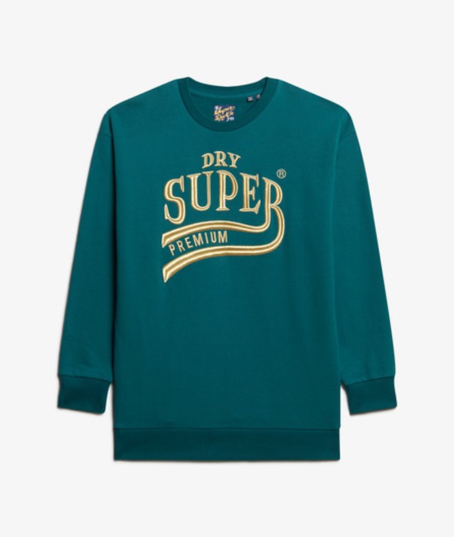 Superdry Women's Luxe Metallic Logo Sweat Dress Green / Deep Teal