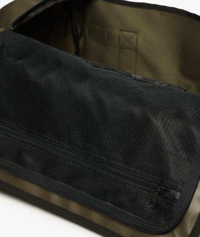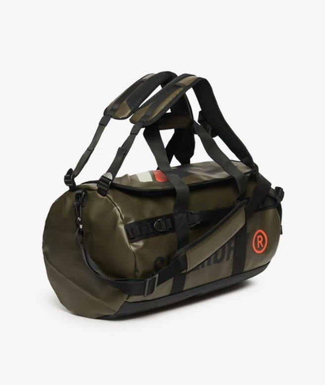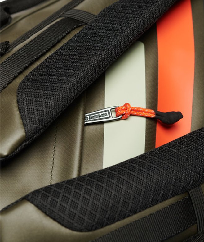 Twin carrier handles with hook and loop fastening Adjustable shoulder strap with movable padding Adjustable backpack straps Two grab handles End grab handle Top flap with zip pocket Printed graphic on top flap Zipped main compartment Internal mesh compartment with zip fastening Internal zip pocket Printed Superdry branding 37-litre approximate capacity H 28cm x W 49cm x D 28cm