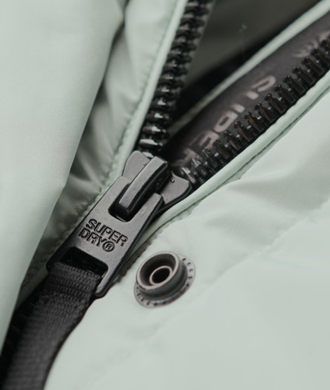 Go for your normal size Padded throughout, including the hood Zip and popper fastening Two front zip pockets Inside pocket Second sleeve with thumb hole Adjustable hem Superdry embroidery on the sleeve and the shoulder blade