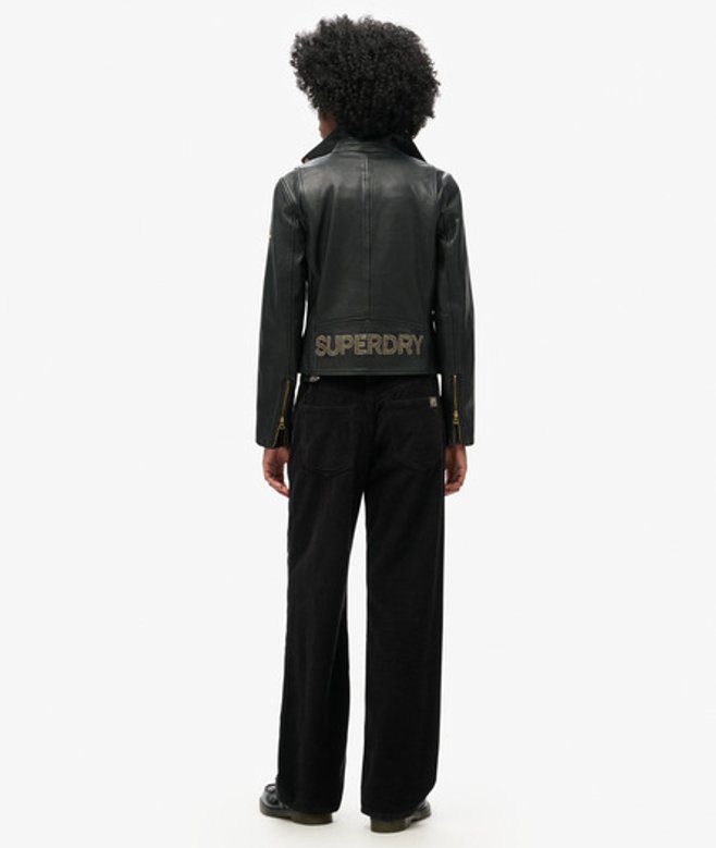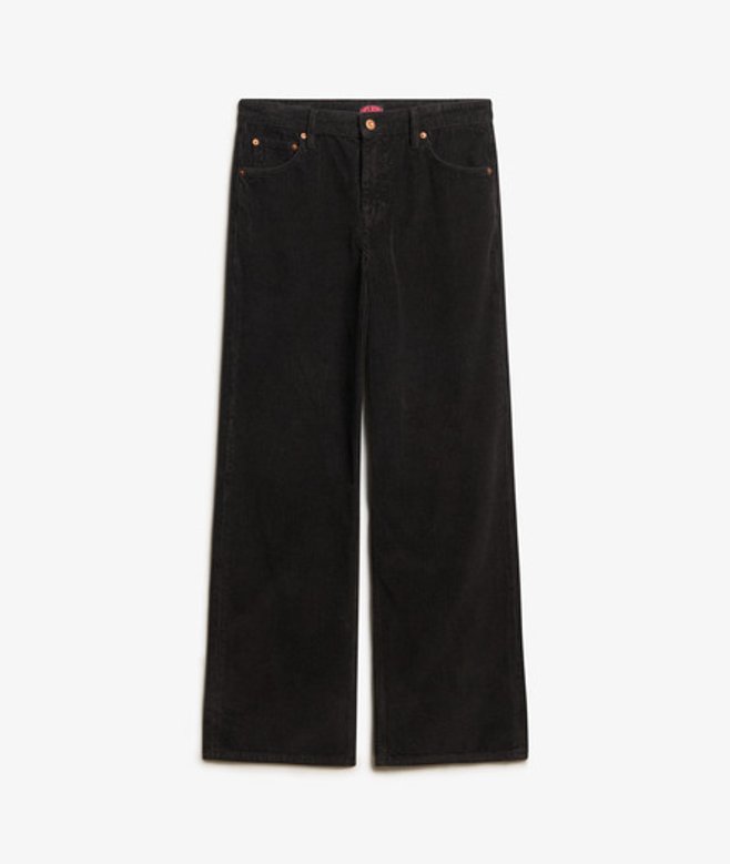 Superdry Women's Mid Rise Wide Leg Cord Trousers Black