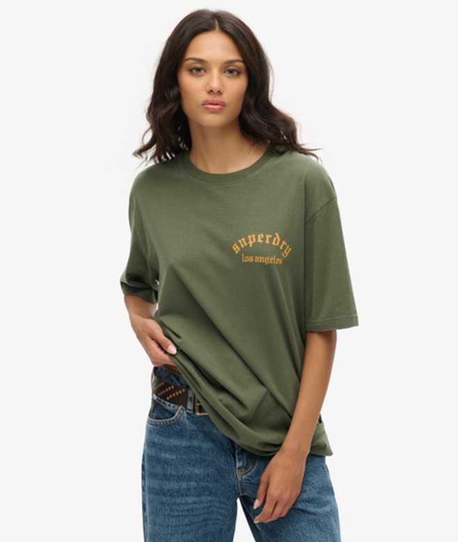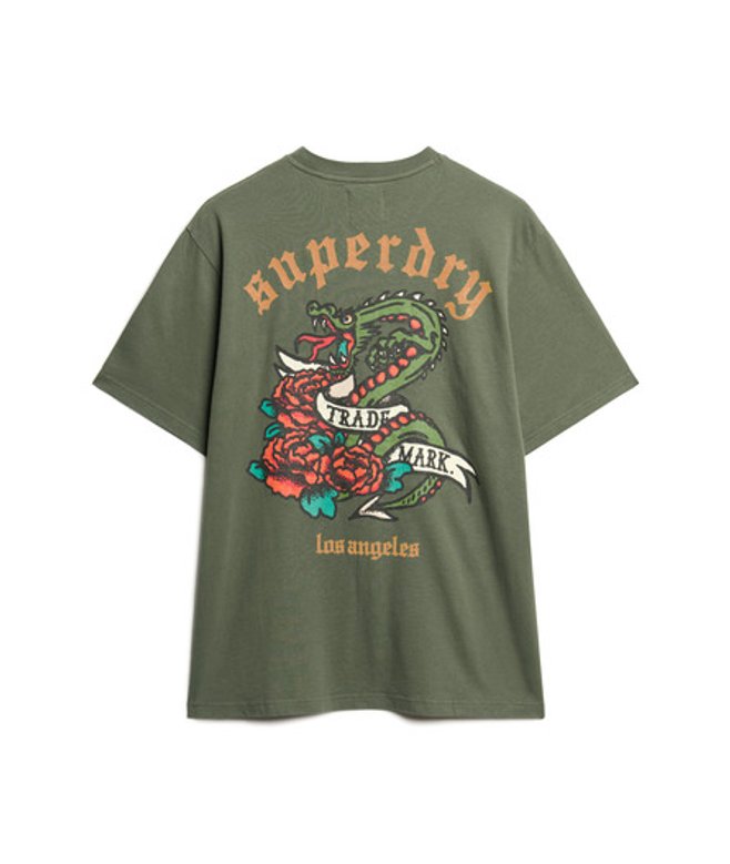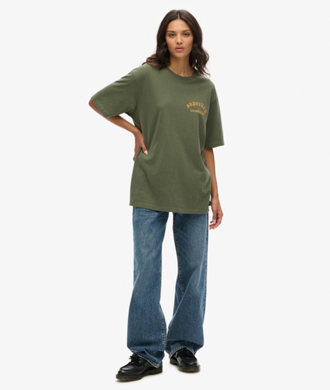 Superdry Women's Oversized Tattoo Back Graphic T-Shirt, Green and Yellow