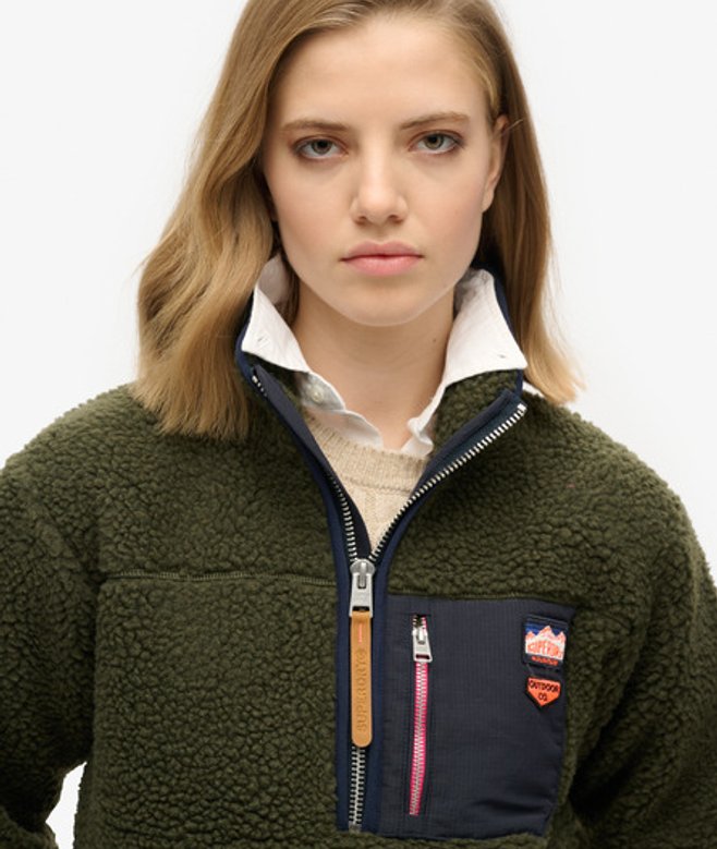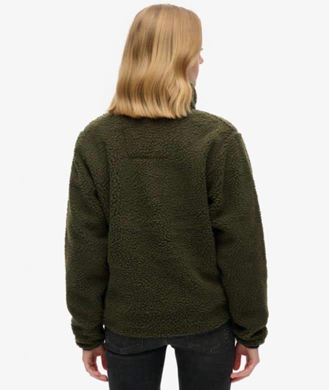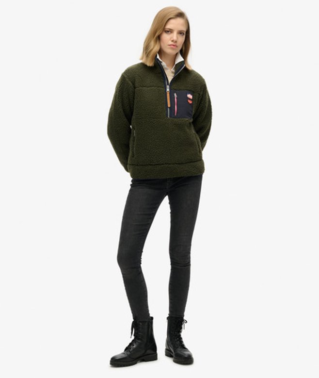 Superdry Women's Fully Lined Vintage Retro Half Zip Fleece Jumper, Dark Khaki