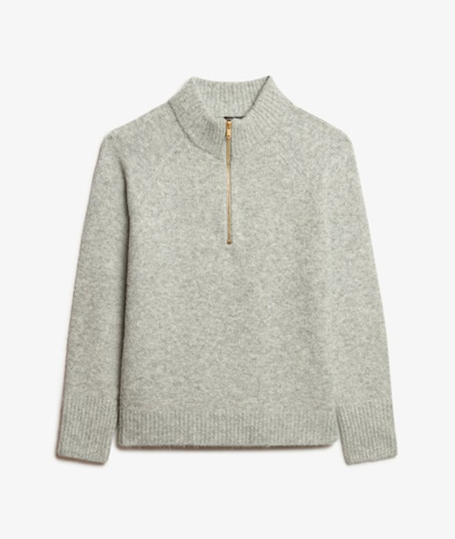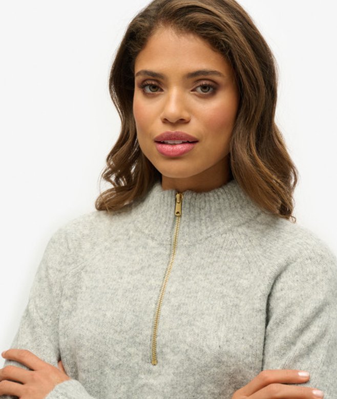 Go for your normal size High neckline with zip fastening and ribbed cuffs Small signature tab on the back neckline Elegance and comfort go hand in hand with our Brushed Half Zip Jumper.