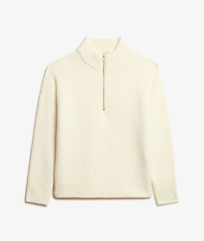Superdry Women's Brushed Half Zip Jumper Cream / Ecru