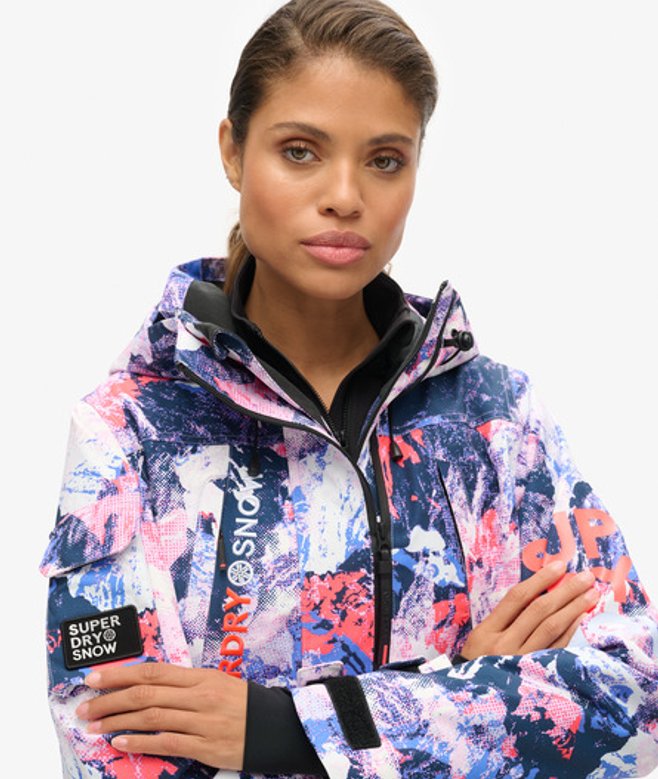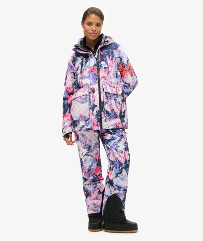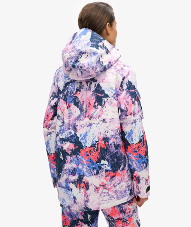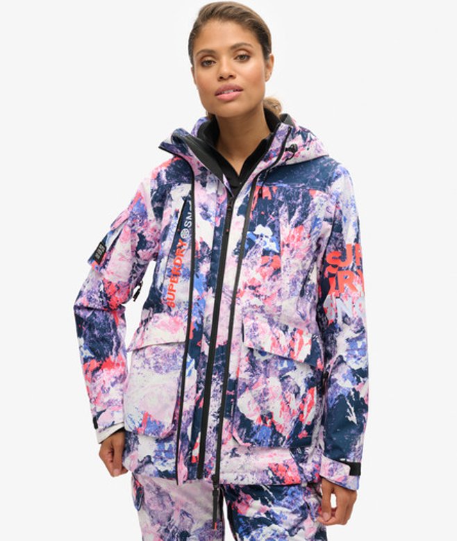 Loose Fit - where comfort meets cool, a stylish loose cut makes this a must-have shape Durable water repellency - This fabric has been coated with an advanced water-resistant finish Waterproof 20k/mm - Waterproof under high pressure, for heavy rain and wet snow Removable snow skirt Bungee cord adjustable hood and waistline Four external pockets One internal pocket Ticket holder on the sleeve Cuff with thumb hole Contrast printed Superdry text on the sleeve Contrast Superdry stitching across the body