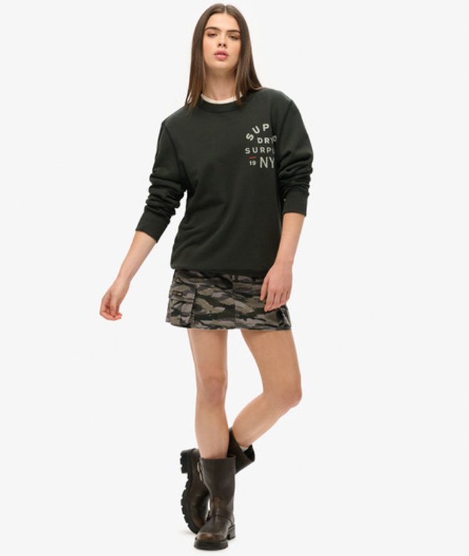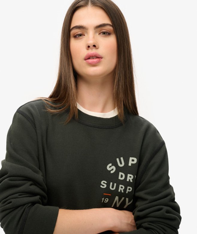 Superdry Women's Classic Oversized Surplus Graphic Crew Sweatshirt, Black