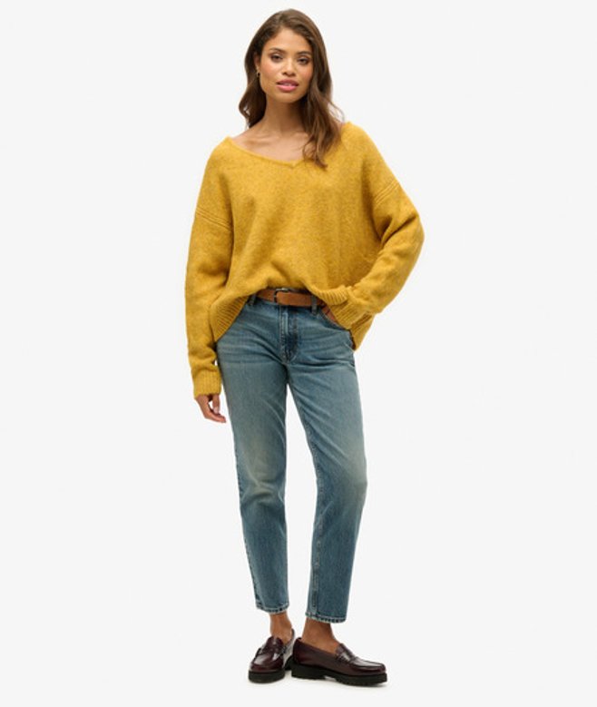 Superdry Women's Oversized V Neck Jumper Yellow / Gold Yellow Twist