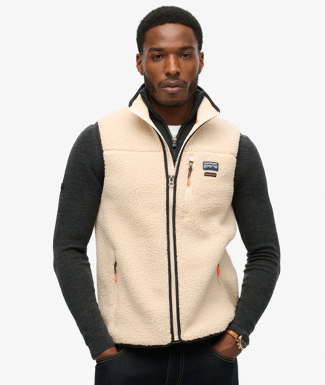 Go for your normal size Zip fastening Three front pockets with zip fastening All over borg Contrast trims Subtle embroidered branding on chest The Outdoor Fleece Gilet is a classic staple that offers superior comfort whilst keeping practicality in mind with its sleeveless gilet design.