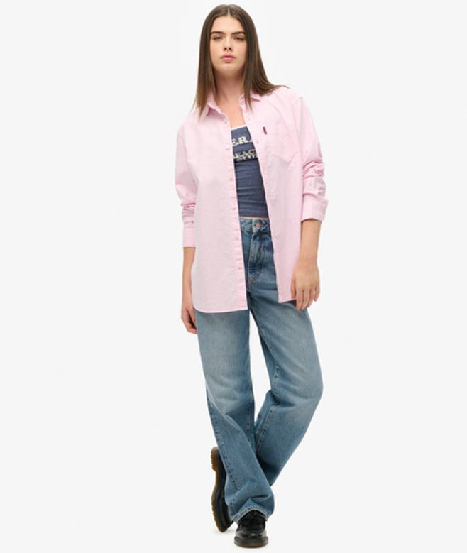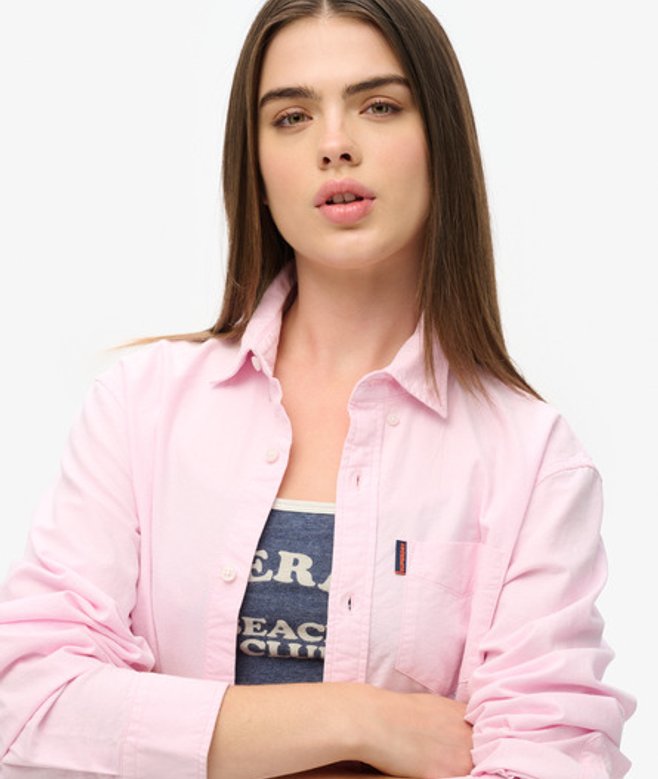 Superdry Women's Classic Long Sleeved Oxford Shirt, Pink