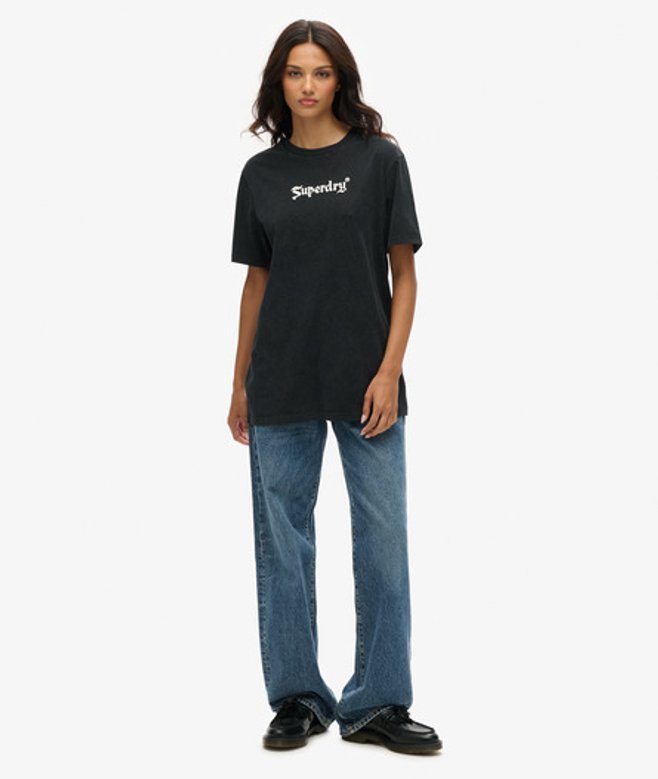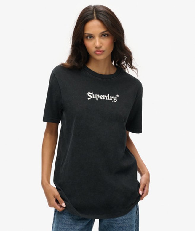 L fits UK 6-8, EU 34-36, US 2-4 XL fits UK 10-12, EU 38-40, US 6-8 XXL fits UK 14-16, EU 42-44, US 10-12 Crew neckline with short sleeves Gothic-style Superdry logo print Full-size back print with a snake emblem Cracked print finish Graphic tees are a staple at Superdry and the Oversized Retro Rock Graphic T-Shirt is no different.