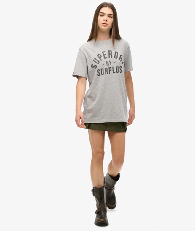 L fits UK 6-8, EU 34-36, US 2-4 XL fits UK 10-12, EU 38-40, US 6-8 XXL fits UK 14-16, EU 42-44, US 10-12 Ribbed crew neckline with short sleeves Graphic print on the chest Signature tab on the hemline Vintage vibes run rife in the Surplus Graphic T-Shirt.
