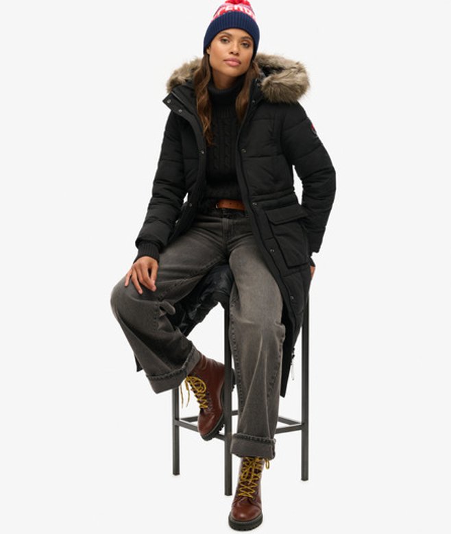 Wool blend Fine knit Fairisle pattern Bobble Turnback hem Superdry logo