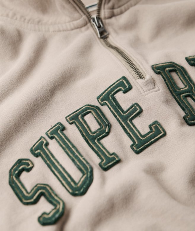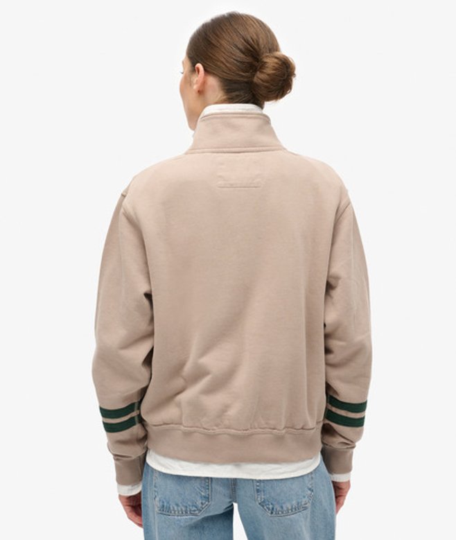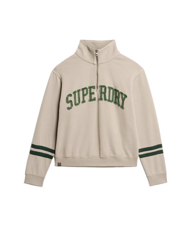 Crafted with 100% cotton for that super soft feel and finished with a dropped sleeve, loose fit and cropped cut, it will give a trendy, fresh vibe to your everyday look. Loose Fit - where comfort meets cool, a stylish loose cut makes this a must-have shape High collar Half zip Dropped sleeve Ribbed hem and cuff Contrast stripes around the sleeve Superdry applique text on the chest Sewn-in Superdry tag at the bottom