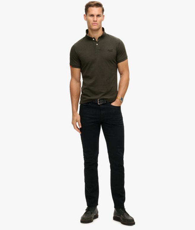 Go for your normal size Pique fabric Regular collar Two-button fastening Short sleeves Reinforced split-side seams Taped collar lining Embroidered Superdry logo