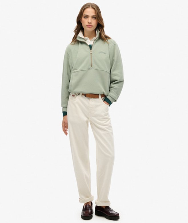 Superdry Women's Essential Logo Oversized Half Zip Sweatshirt Green / Lily Pad Green