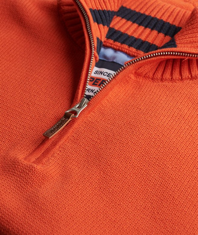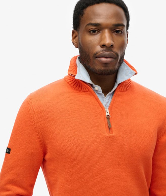 Our Cotton Classics half-zip knitted jumper has been curated with a sumptuous, thick-knitted fabric along with a stylish high collar, that we've intentionally finished with an internal stripe to further elevate the jumper.