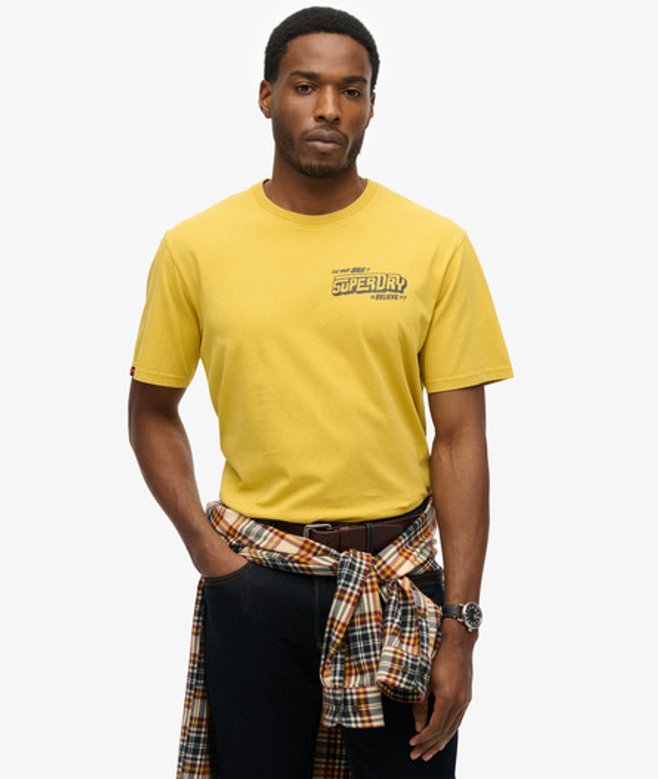 This eye-catching graphic is a tribute to iconic B-movie posters with a clear Superdry twist, a playful design that is particularly striking on this comfortably relaxed t-shirt, perfect for giving your favourite looks a retro refresh.