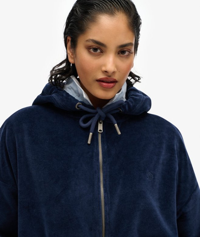 Superdry Women's Velour Zip Hoodie Navy / Richest Navy
